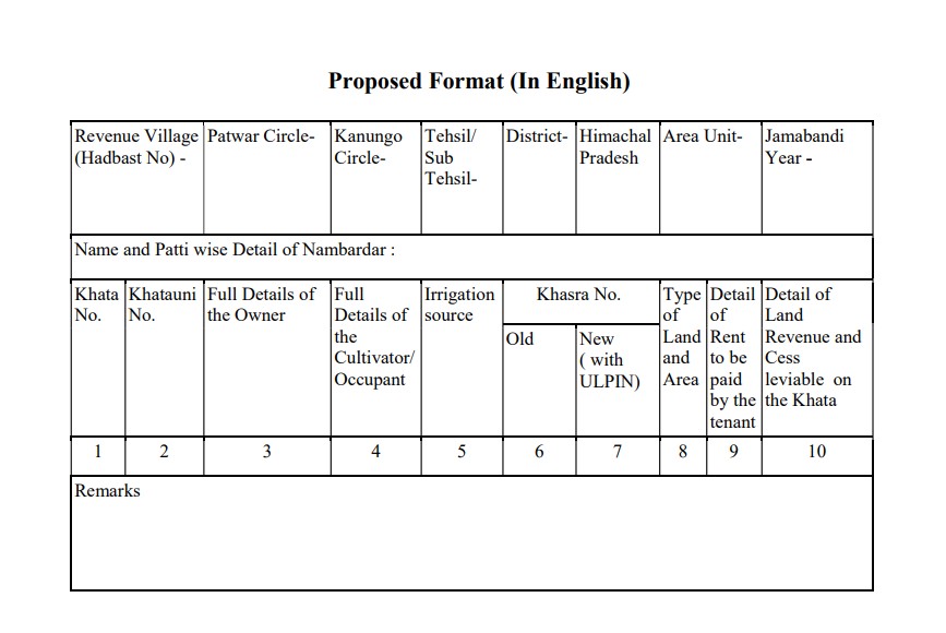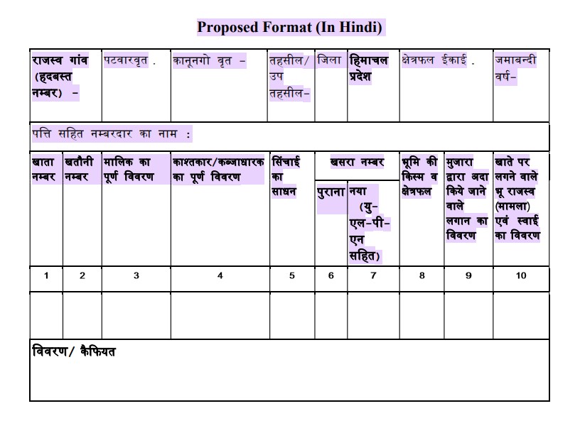 The new jamabandi format has replaced Urdu, Arabic, and Farsi terms with pure Hindi. So that people can understand easily the format language.