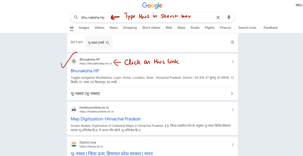 Visit theoffical website – Write “Bhunaksha hp ” in google search bar and click on below shown link in image.