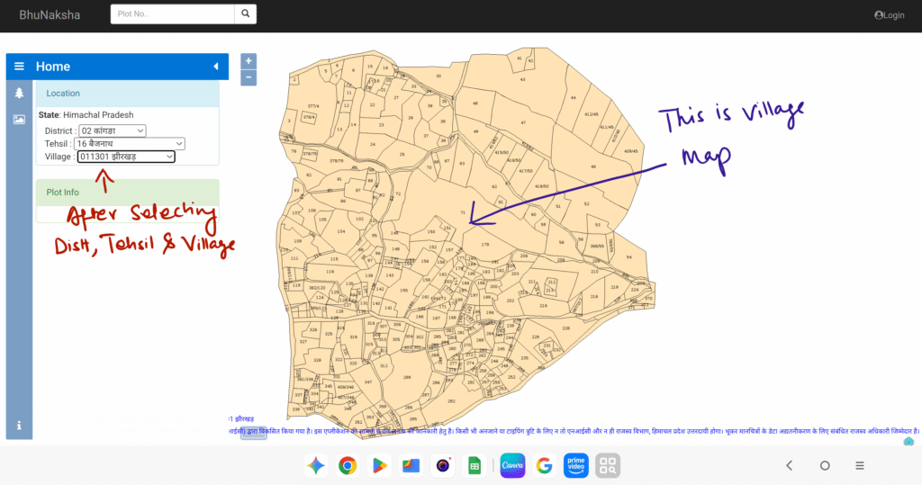 After selecting Distt. Tehsil and Village , you will get the map of village as shown in image.